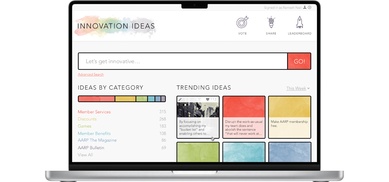 At EAI Technologies, we’re usually brought on to solve problems for a client: an aging website, a cumbersome workflow, or helping the client move into a sector they may not be as familiar with. In the case of AARP’s Innovation Ideas app, we had the unique opportunity to help AARP as an organization solve the problems it faces by leveraging the imagination and intuition of each of its almost 2,000 employees.